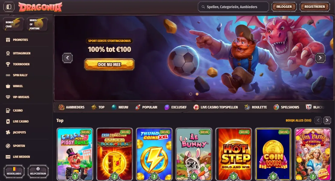 Dragonia is een recent online casino met een grote spelbibliotheek en een moderne, mobielvriendelijke site. De lobby combineert videoslots, tafelspellen, jackpots en live tafels met echte croupiers. Opvallend zijn de ruime keuze aan betaalopties (ook crypto) en duidelijke filters per provider en inzet. Let wel: Dragonia Casino werkt met een niet-Belgische licentie; controleer altijd of je vanuit België mag spelen volgens de lokale regels.