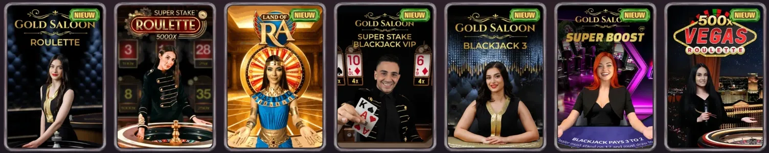 - Cashback: wekelijkse terugbetaling van verliezen, soms ook specifiek voor live casino.